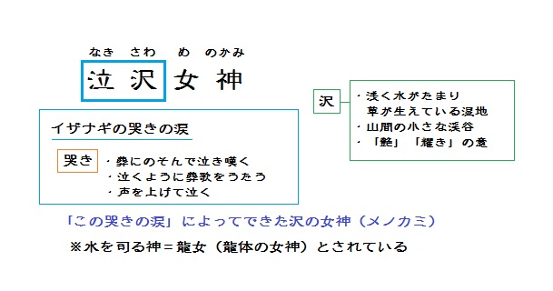 非常に重要な「水の女神」だと思いますので「泣沢女神」の神名を読み解いてゆきたいと思います。