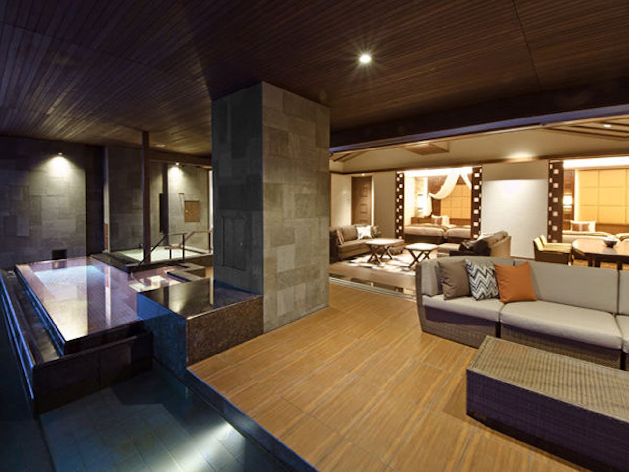 - SPA&SUITE棟で楽しむ温泉・スパ・アクアテラス