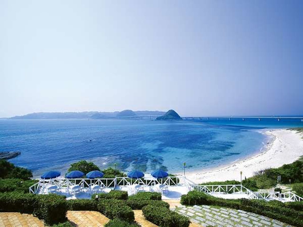 海にかかる長い橋は「角島大橋」です。