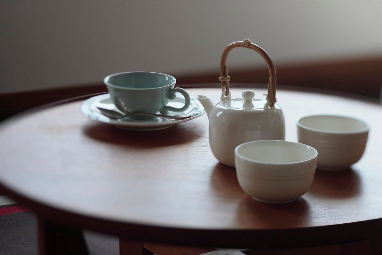 匠の技の光る芸術作品の茶器をゲストがお茶を楽しむためにそっと置いてある贅沢さ